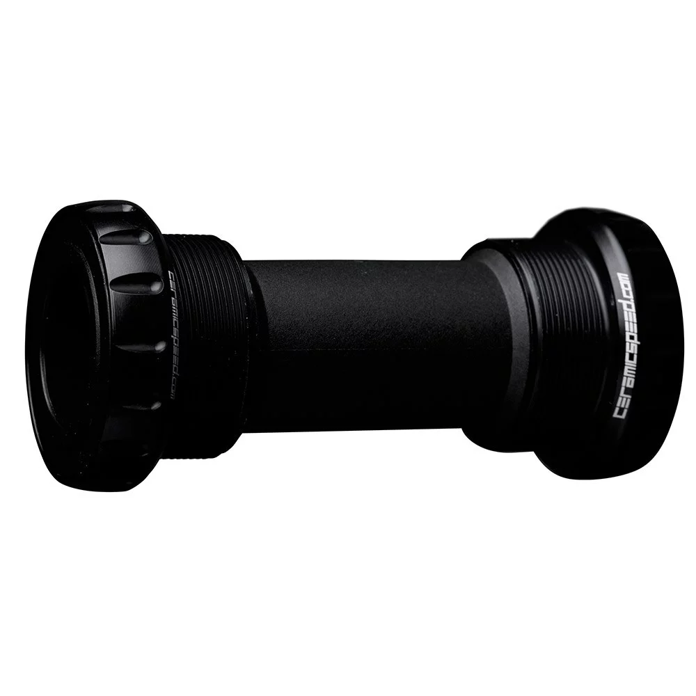 CeramicSpeed bearings pressed into threaded cups, then threaded into the frame. Those bearings comprise either Standard or Coated Bearings. Super round, super smooth CeramicSpeed balls rotate in hardened-steel races in both. The Coated version has a metallic coating laid onto the races, making them even harder and smoother, resulting in longer life and lower drag.