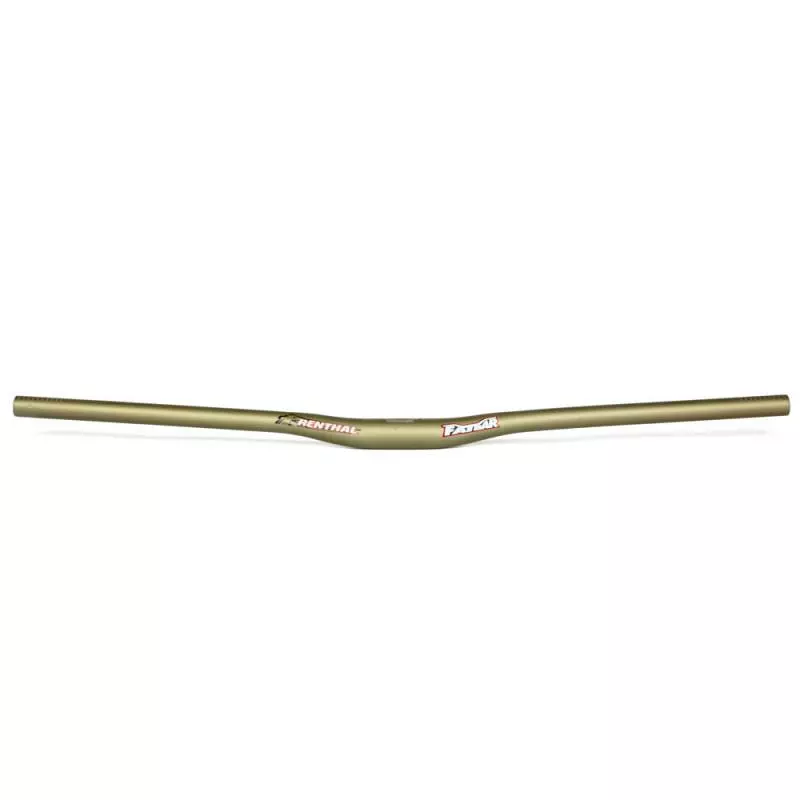 The popular Fatbar Lite has been given some structural tweaks to bring it bang up to date with the increased width of 760 mm -useful for trail bikes or riders with a preference for a bar thats not super wide. With efficient use of high grade 7050 T6 aluminium, Renthal has kept the same weight of 270g. The new Fatbar Lite still retains the same high level of strength of the original model and the ride feel also is unchanged. The new Fatbar Lite is available in Renthals usual choice of rise options; 10, 20 30 and 40 mm. Also, as with the wider Fatbar, is a colour option; either the distinctive Renthal AluGold hard anodised or the all new black hard anodised finish.