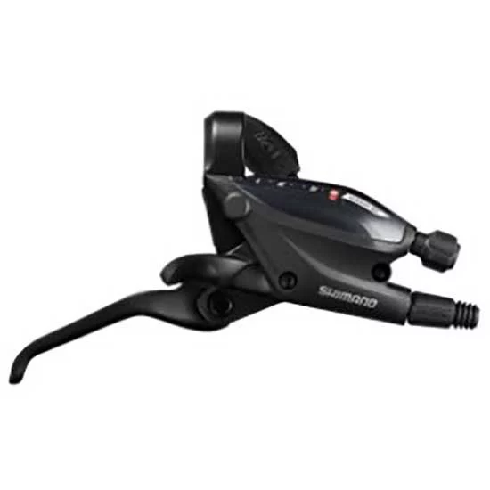With Shimano´s precise and stable shift/brake lever for derailleur gears, you can get your mountain bike or trekking bike in the right gear at any time to make accelerate effectively. Brake safely and reliably with the integrated brake lever. The 8-speed system from the market leader Shimano is compatible with derailleur gears and fits 22.2 mm handlebars.