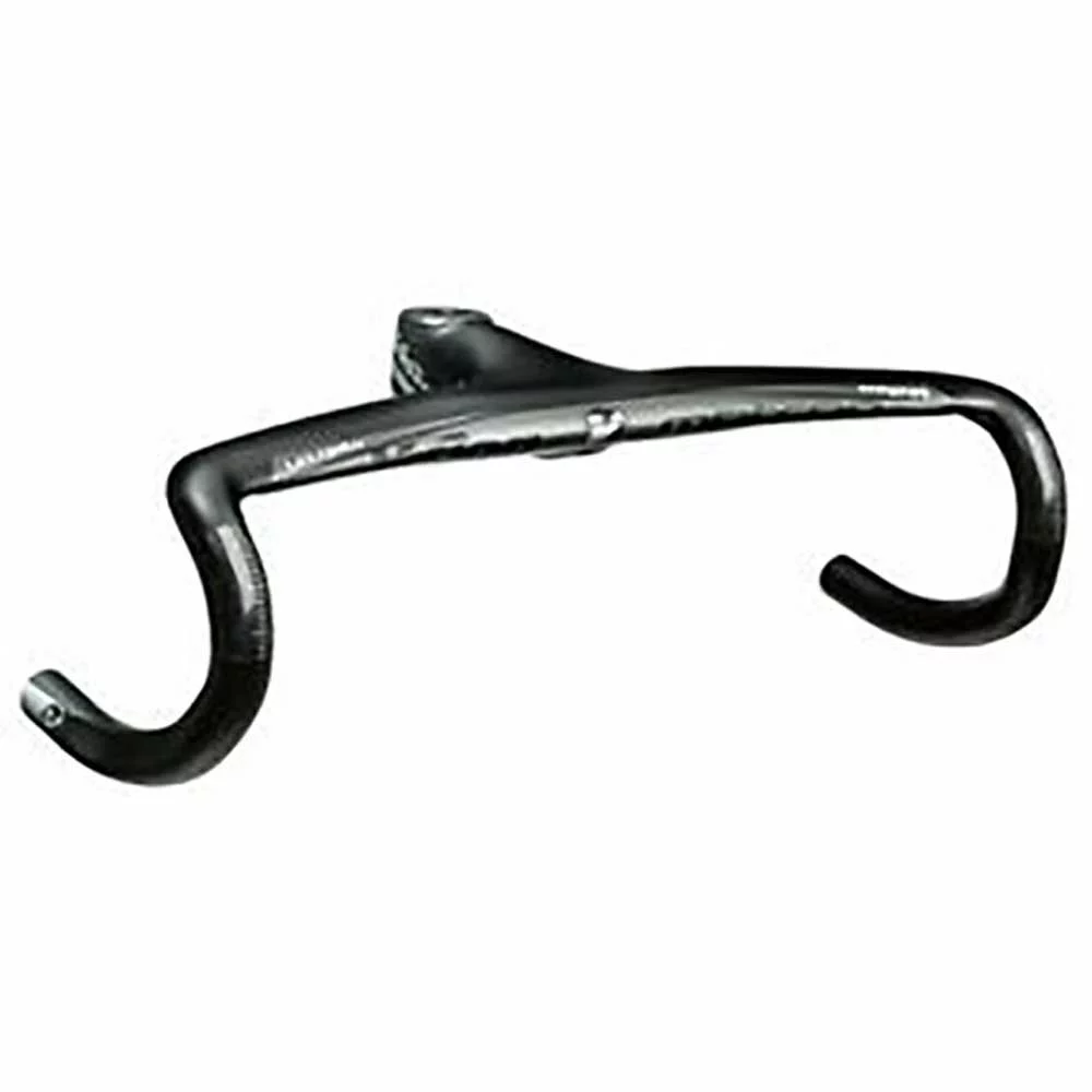 Metron 5D integrated handlebar, the stiffest and most aero integrated handlebar and stem system. Mixing aerodynamics and ergonomics, the unique shape includes our Aero-Ergo central section. With a slight rise from the stem clamp and a 10 degree forward bend, the 5D accommodates the natural position of your arms for more comfort and easier breathing, while the wing-like shape of the bar top aids aerodynamics. Reinforced carbon fiber construction gives a great strength-to-weight ratio. The 5D features internal cable routing, with guides that accommodate wiring for electronic shifting.