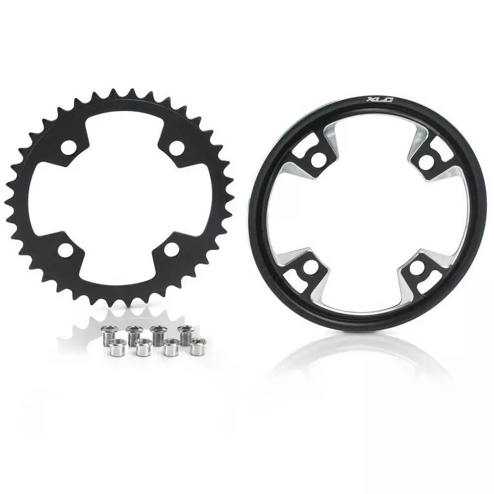 This stable chainring offers you high security and reliability. With the XLC chainring for Bosch systems CR-E02 with including cover you will achieve optimal control and drive. With an amount of 38 teeth and a BCD of 104 mm (4 arms), this is a particularly lightweight aluminum, CNC-machined chainring suitable for all 9/10S singlespeed bicycle chains.